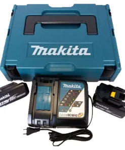 Questo kit contiene 2 batterie Makita BL1850B 18v 5,0Ah agli ioni di litio con indicatore di stato di carica a LED, un caricabatterie intelligente DC18RC 18v ed una Valigetta MakPac type 3, oltre a un inserto in plastica appositamente studiato per questo kit di batterie e caricabatterie.
