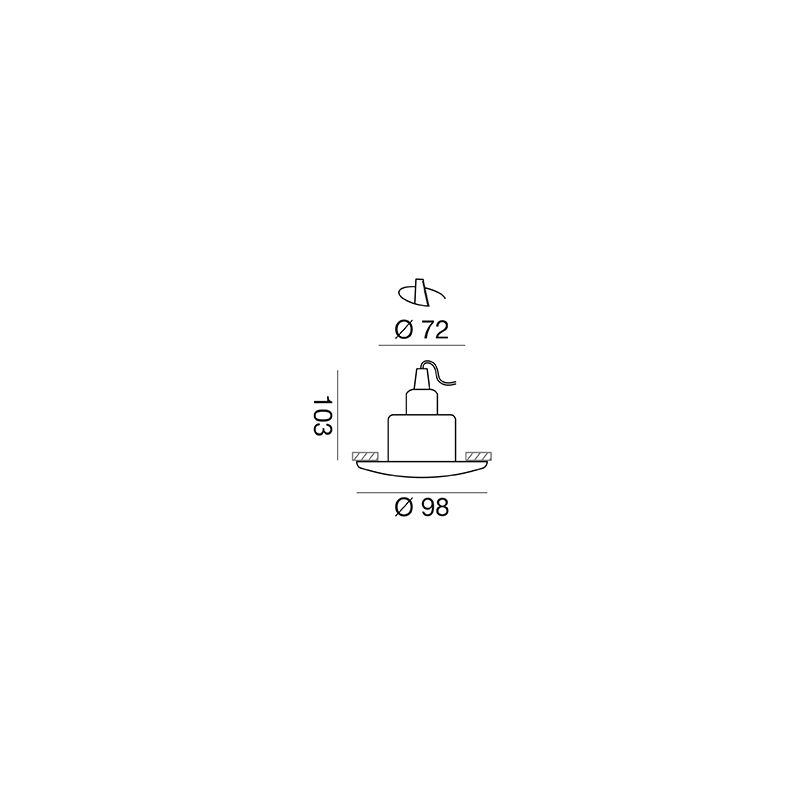 GFA070: ø 9 x 9,6 cm; - Foro incasso: ø 7,2 cm