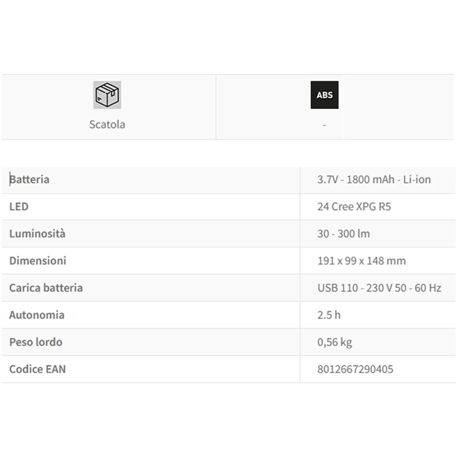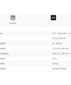 Faro multifunzione dotato di torcia led anteriore con vari livelli di luminosità.
