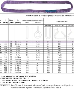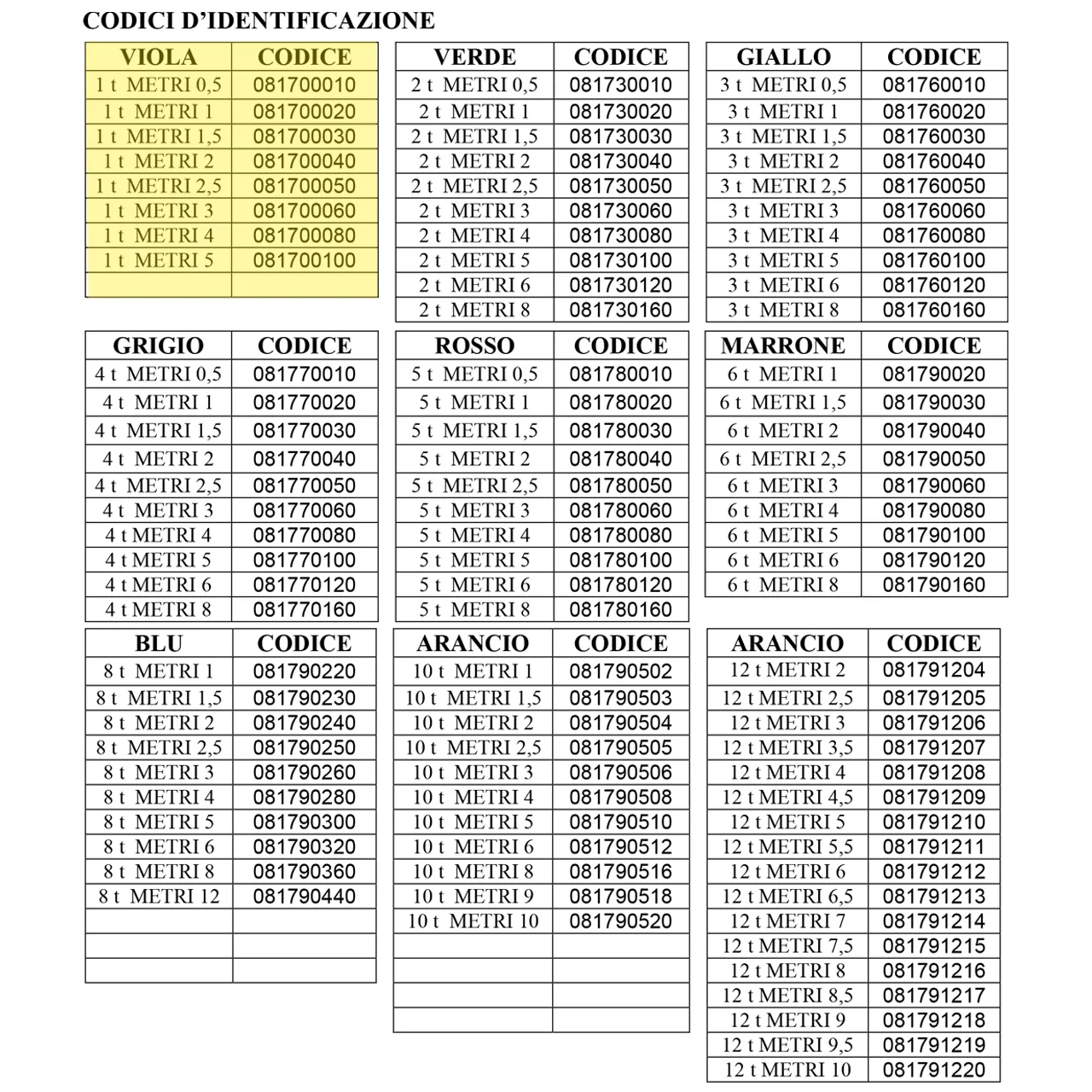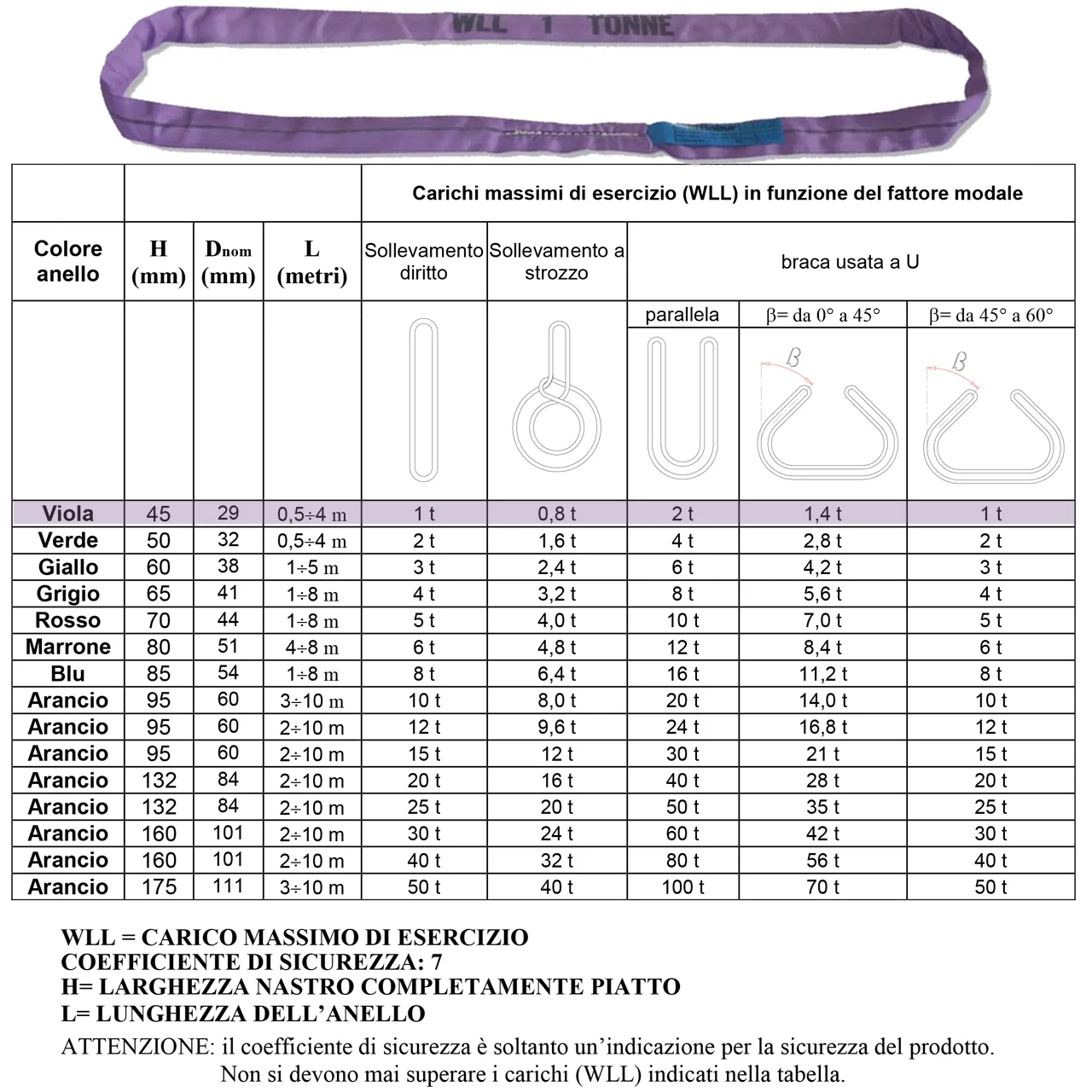 Il colore della braca identifica in modo immediato il carico massimo di esercizio WLL: Viola = 1 TON.