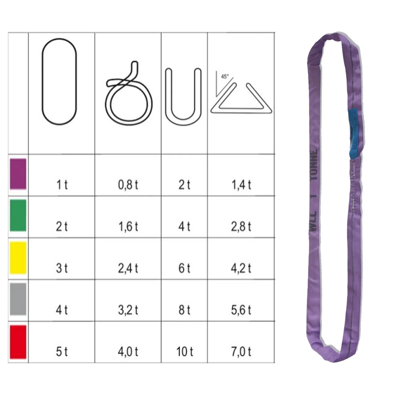 Brache per sollevamento con una portata di 1 Tonnellate, nastro ad anello continuo viola in poliestere ad alta densità PES.