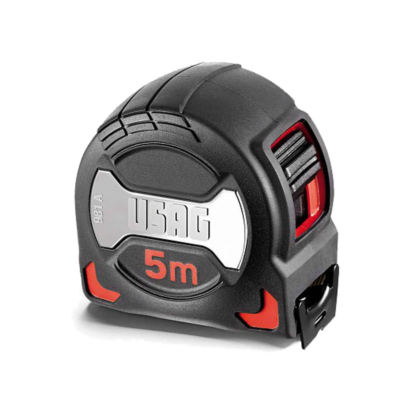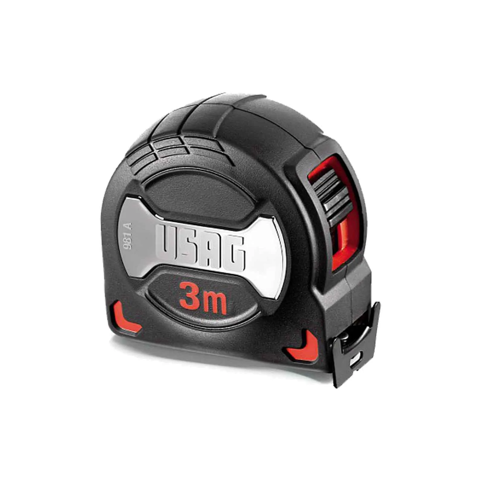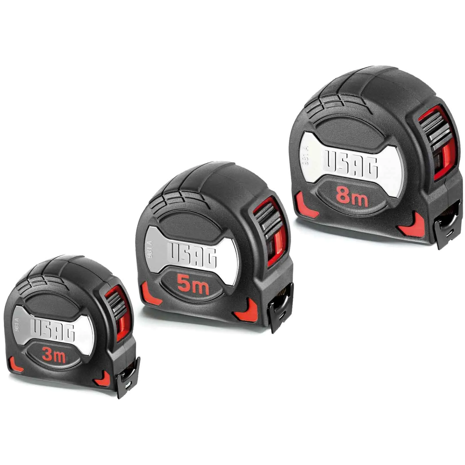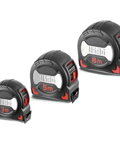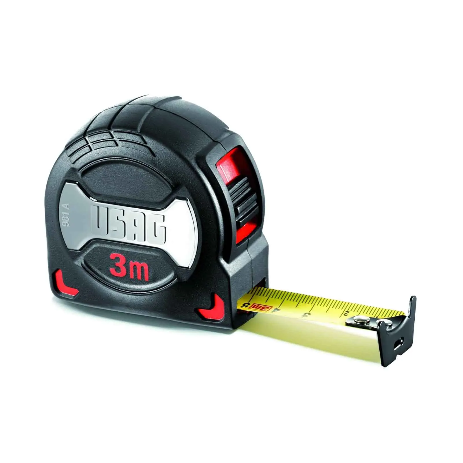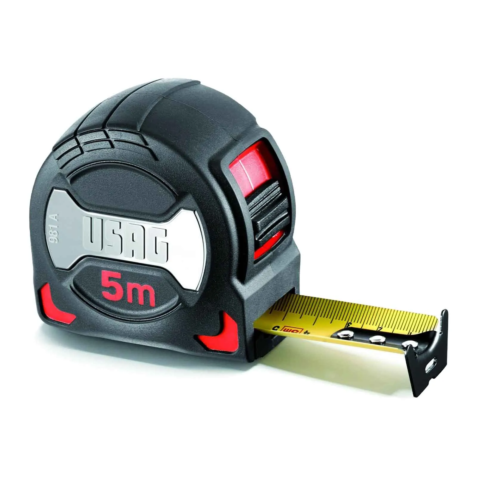 Bloccaggio a pulsante con ritorno automatico del nastro per poter prendere le misure con le mani libere