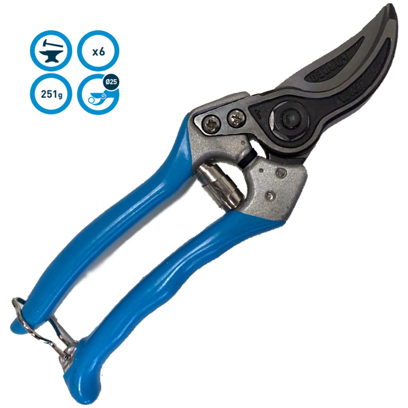 Questa forbice è dotata di ammortizzatore paracolpi per non affaticare articolazioni e muscolatura della mano dell’operatore.