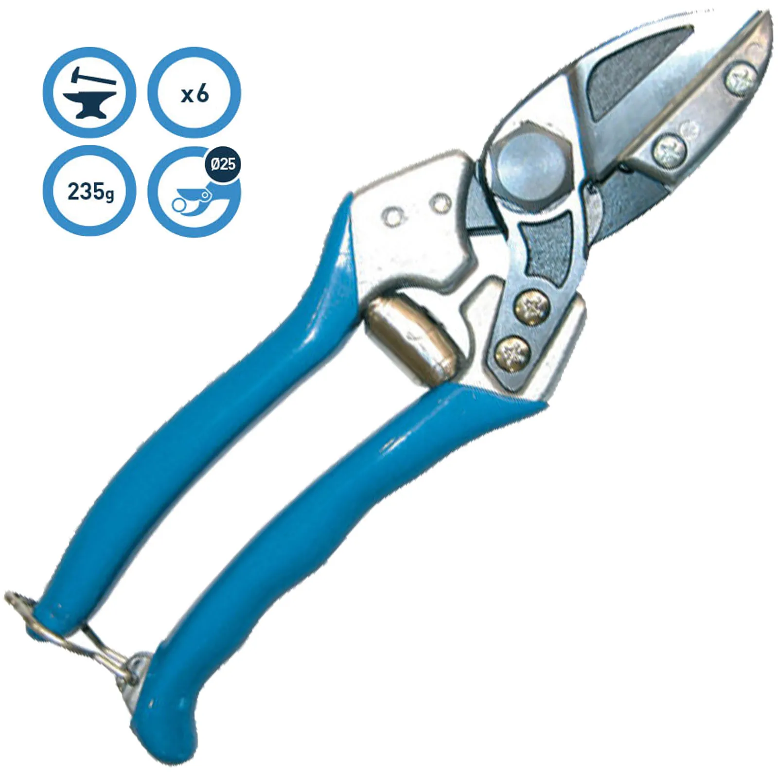 Questa forbice è dotata di ammortizzatore paracolpi per non affaticare articolazioni e muscolatura della mano dell’operatore.