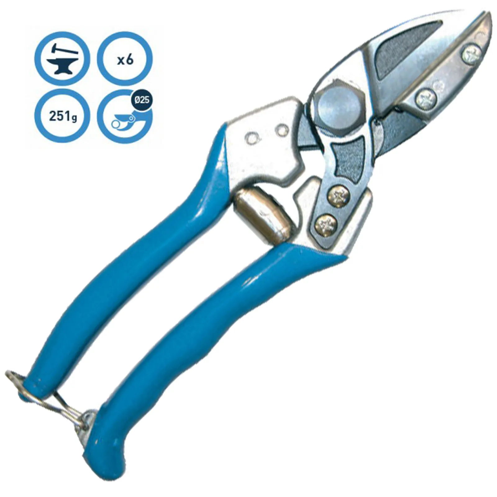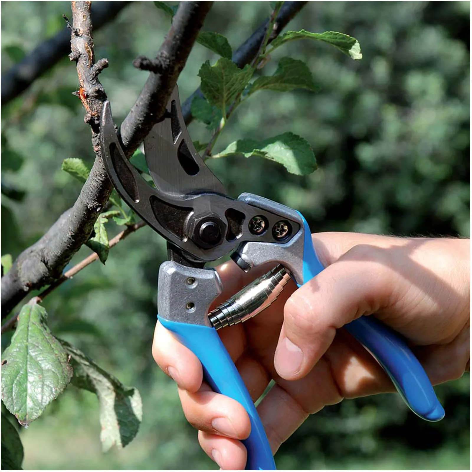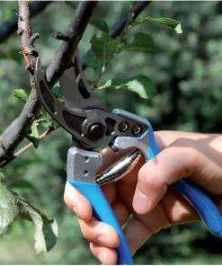Inoltre, è montata in posizione eccentrica per garantire il cosiddetto “taglio a tiro” che tende a trascinare il ramo verso il fulcro di rotazione, evitando che sfugga dalla presa e diminuendo lo sforzo dell’operatore.