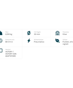 Grazie all’abbinamento con un’asta di prolunga fissa o telescopica, la pratica cesoia pneumatica VICTORY non affatica l’utilizzatore, al quale richiede una semplice manutenzione.