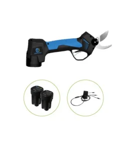 Forbice per la potatura agevolata, funzionante con una leggerissima batteria incorporata che permette di lavorare senza alcun cavo garantendo una grande libertà di movimento da parte di chi le utilizza e quindi una maggiore manualità e funzionalità nello svolgimento delle operazioni di potatura. La struttura della batteria risulta leggera e poco ingombrante. Kit composto da due batterie agli ioni di litio e un caricabatterie. Il caricabatterie in dotazione può ricaricare contemporaneamente fino a un massimo di tre batterie. Progettata per effettuare qualsiasi tipo di potatura (vigneti, frutteti, agrumeti, uliveti, piante ornamentali o sempreverdi). Dispone di un sistema di autolubrificazione delle lame, le quali sono in grado di effettuare circa 80 tagli al minuto.