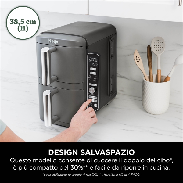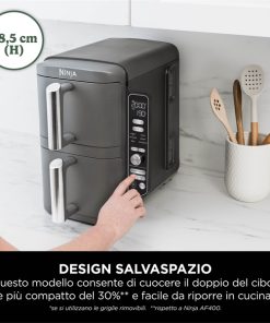 La Ninja Double Stack XL SL400EU è dotata di una serie di caratteristiche che la rendono una scelta eccellente per chi cerca un elettrodomestico versatile e capace di preparare grandi quantità di cibo. Ecco alcune delle sue caratteristiche principali: