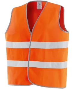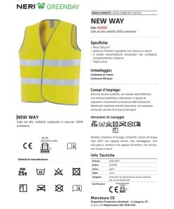 Gilet alta visibilità da lavoro con chiusura frontale a strappo (con fettucce velcrate) regolabile.