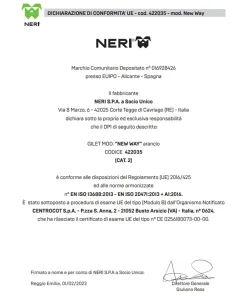 Questo prodotto è conforme alle disposizioni del Regolamento (UE) 2016/425 ed alle norme armonizzate n° EN ISO 13688:2013 – EN ISO 20471:2013 + A1:2016.