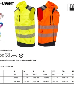 Gilet in tessuto Soft Shell stretch massimo comfort, idrorepellente linea Hi-Light.