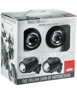Proiettori supplementari GIVI S310, universali, omologati, applicabili facilmente a tutti i paramotori con diametro del tubolare compreso tra i 21 e i 25 mm. Nella confezione e’ incluso il cablaggio comprensivo di rele’ e fusibile per il collegamento diretto alla batteria, e l’interruttore impermeabile da montare sul manubrio. Anche se non strettamente necessario, per evitare di dimenticare accesi i proiettori durante le soste viene fornito un cavo da collegare al blocchetto chiave di accensione della moto.