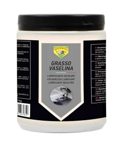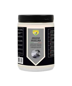 Grasso Vaselina lubrificante in crema di pura paraffina incolore e inerte per proteggere gomma, metalli, legno, pelle, cuoio e tessuti.