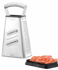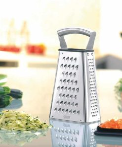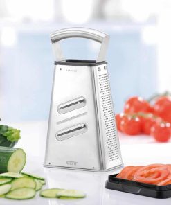 - 4 piani di grattugia: – grattugia fine per cioccolato – grattugia per verdure/formaggi a pasta molle – grattugia per verdure crude/formaggi a pasta dura – affettatrice