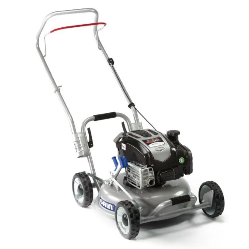 La mancanza della trazione non viene percepita sui prati piani: i tagliaerba GRIN non hanno cesto di raccolta quindi il peso della macchina è ridotto e soprattutto non aumenta con il riempirsi del cesto. Spingere GRIN HM46 è semplice e comodo per tutti e nelle “manovre” non ho nemmeno l ‘attrito della trazione che potrebbe infastidire.