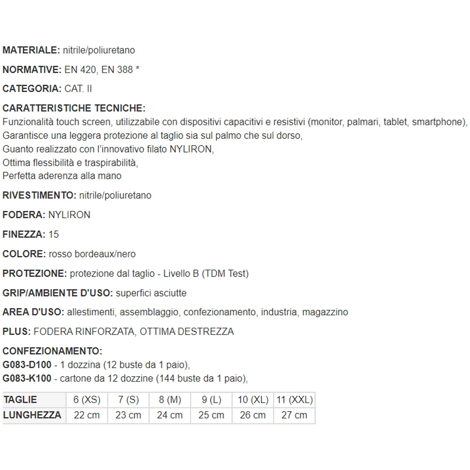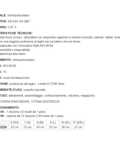 Guanto antitaglio livello B (TDM Test) in tessuto rivestito in Nitrile/Poliuretano.