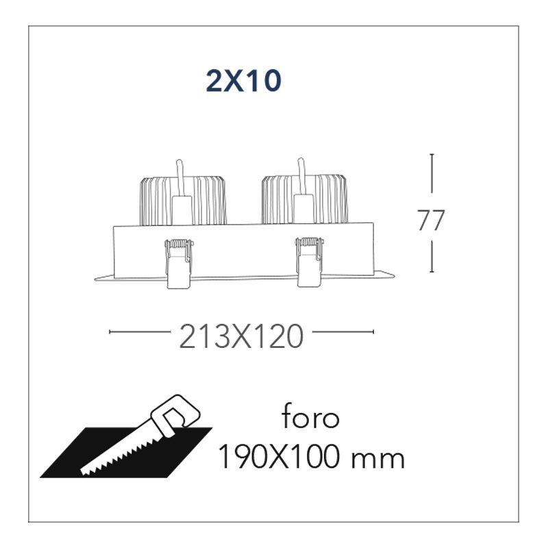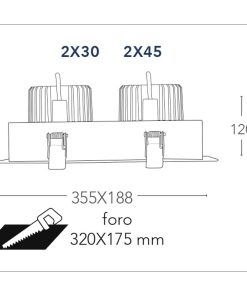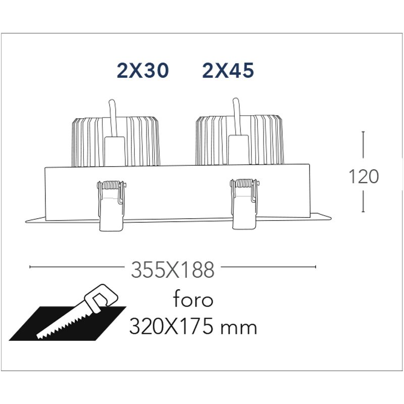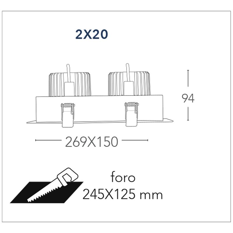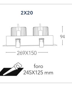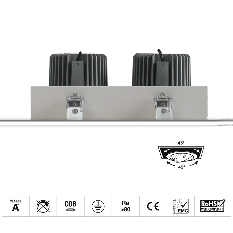 Il faretto da incasso è disponibile nella variante da 2x10w 20w / 2x20w 40w / 2x30w 60w e 2x45w 90w con luce calda 3000k oppure naturale 4000k driver incluso.