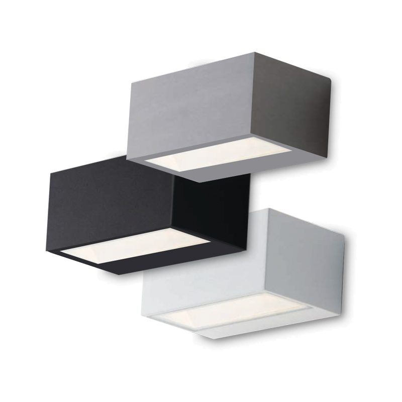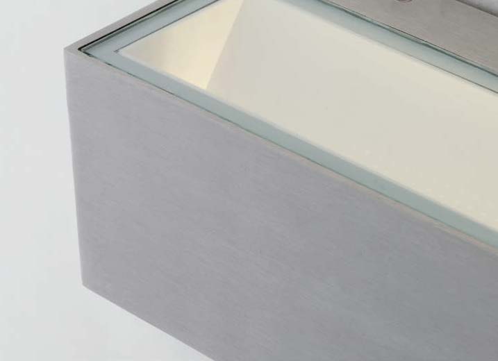Lampada a parete con corpo in alluminio pressofuso verniciato nei colori bianco, antracite, nikel spazzolato. Un’applique led dal taglio regolare e squadrato, che si inserisce perfettamente in un contesto moderno.