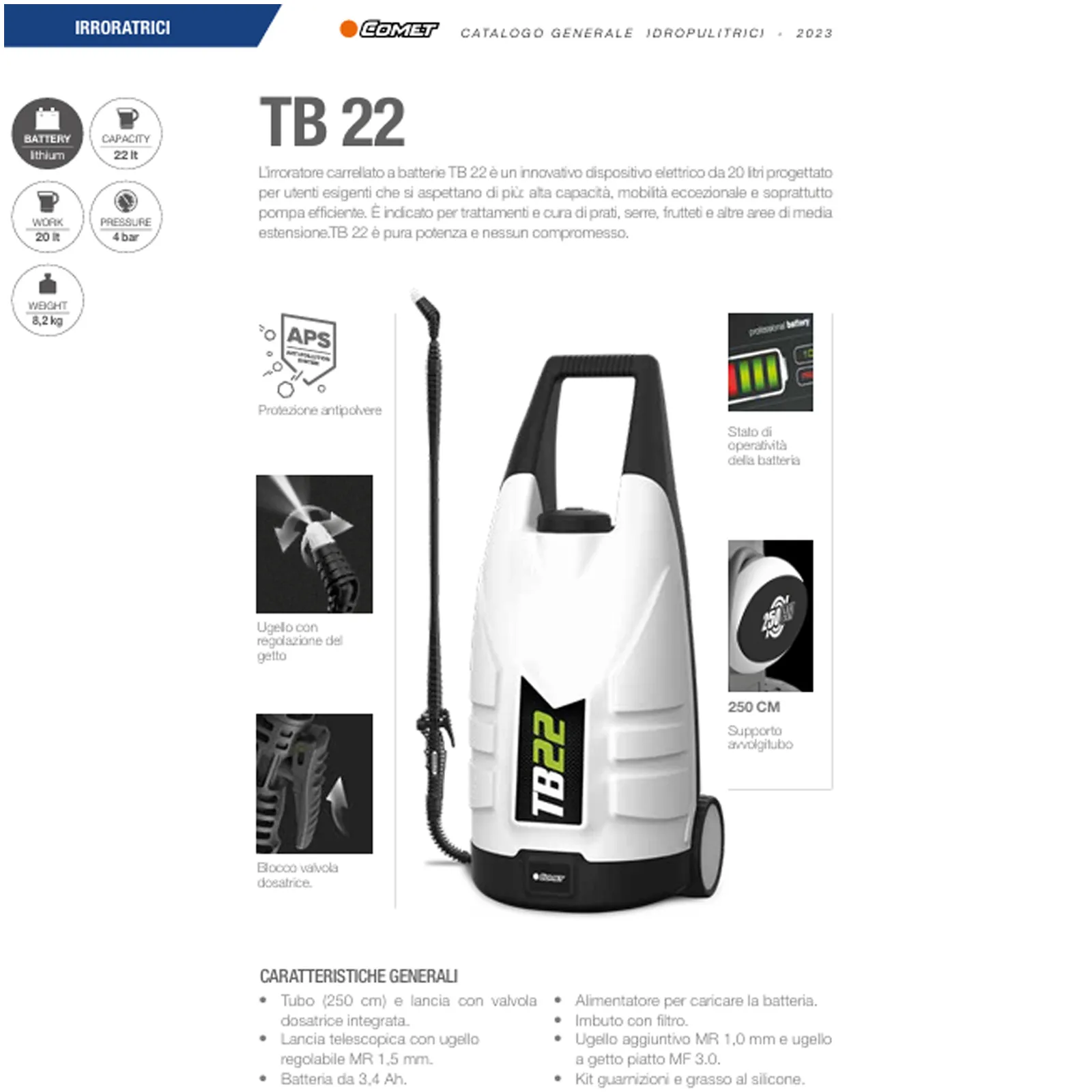 Se cerchi un nebulizzatore a carrello potente, comodo e versatile, il COMET TB 22 è la scelta ideale.