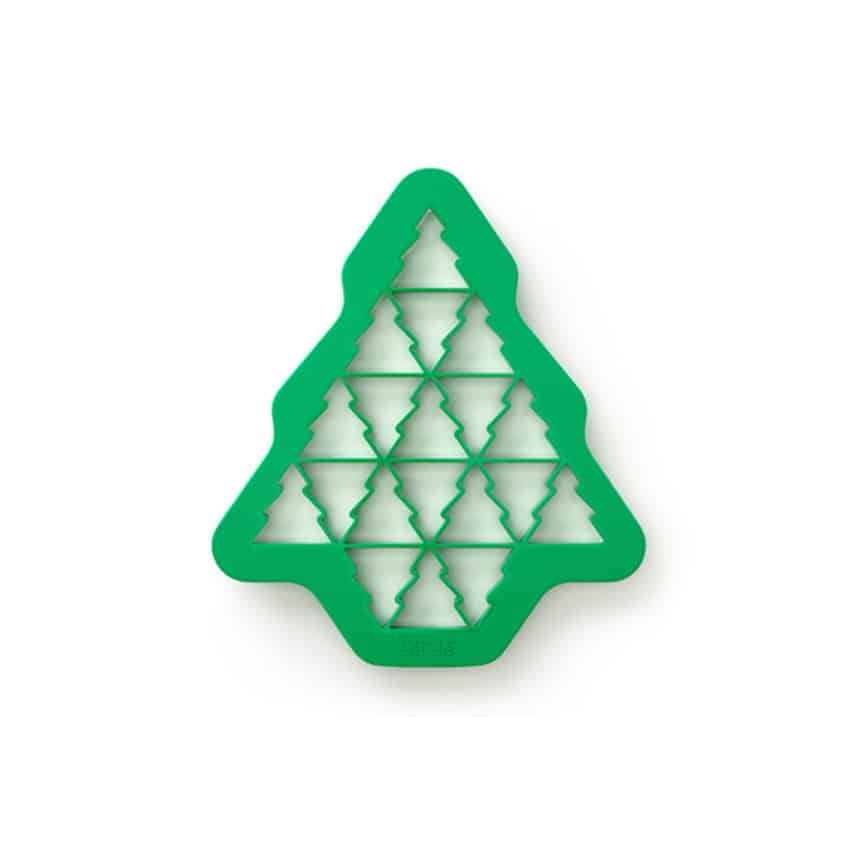Infine, con il tagliapasta verde, a forma di albero di Natale, si possono tagliare 19 alberelli di Natale identici, in una sola mossa.