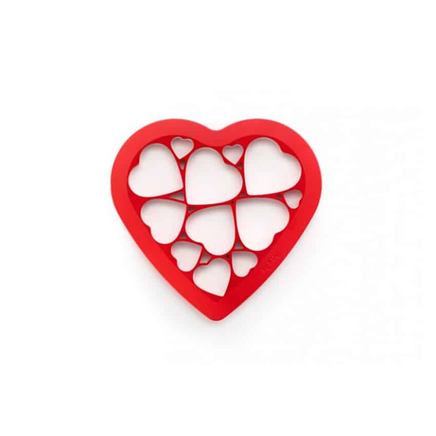 Con il taglia biscotti rosso, a forma di cuore, in un solo taglio si ottengono 12 cuori di due dimensioni.