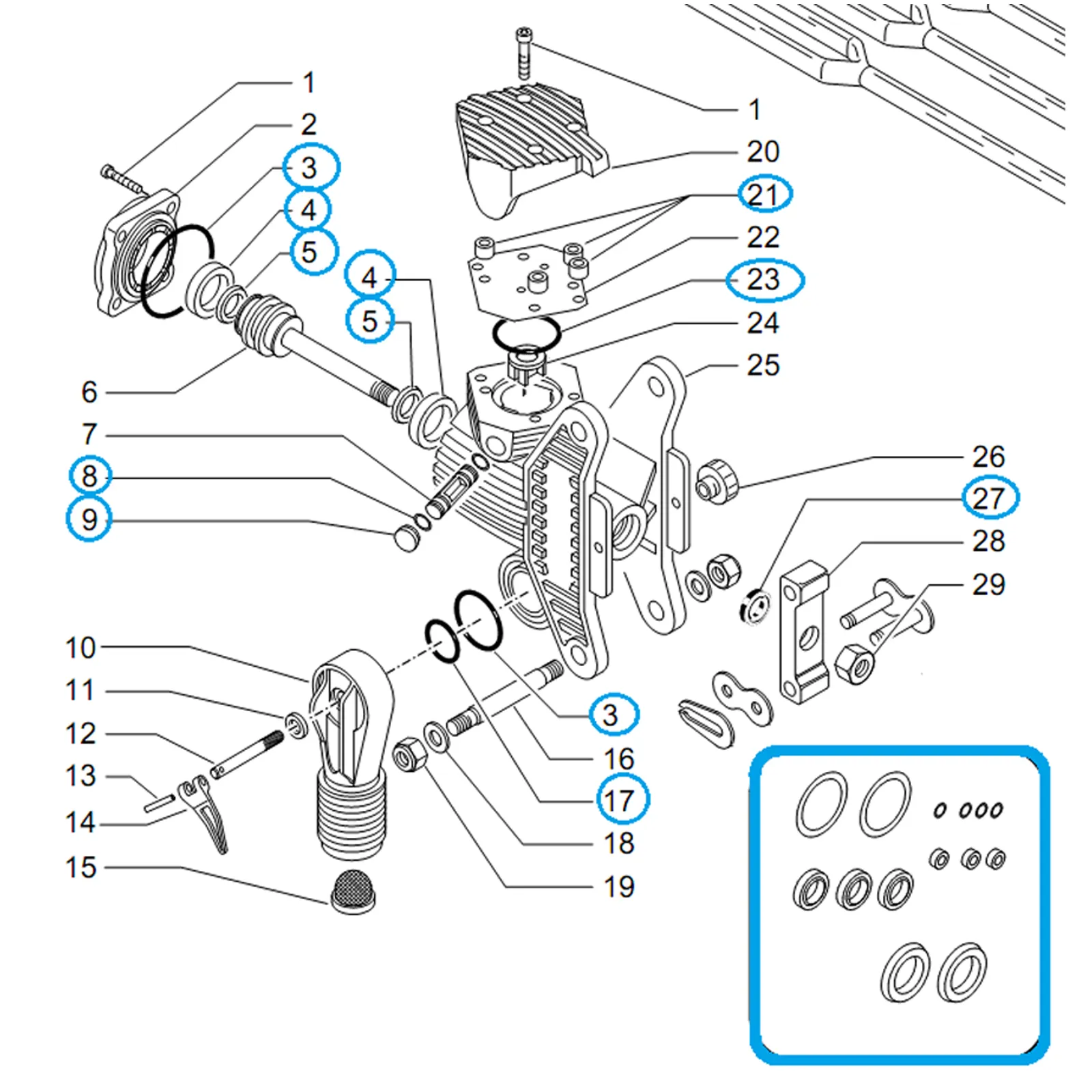 Kit Completo di guarnizioni, o-ring e tutto il necessario per la manutenzione dell’abbacchiatore pneumatico della serie OLISTAR Tuono e Tuono Evo.