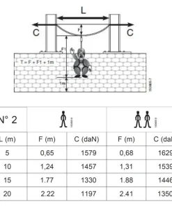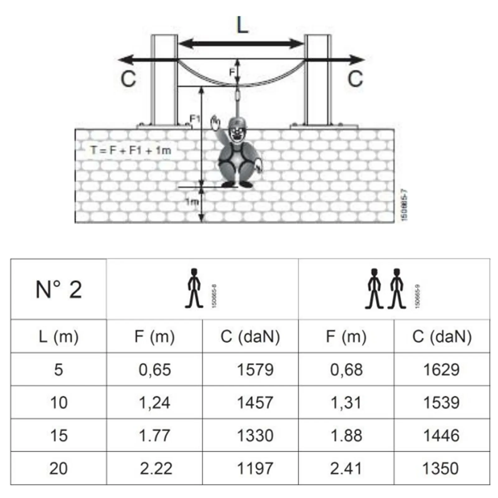 La lunghezza massima della linea tra i due punti di ancoraggio strutturali è di 18 m.