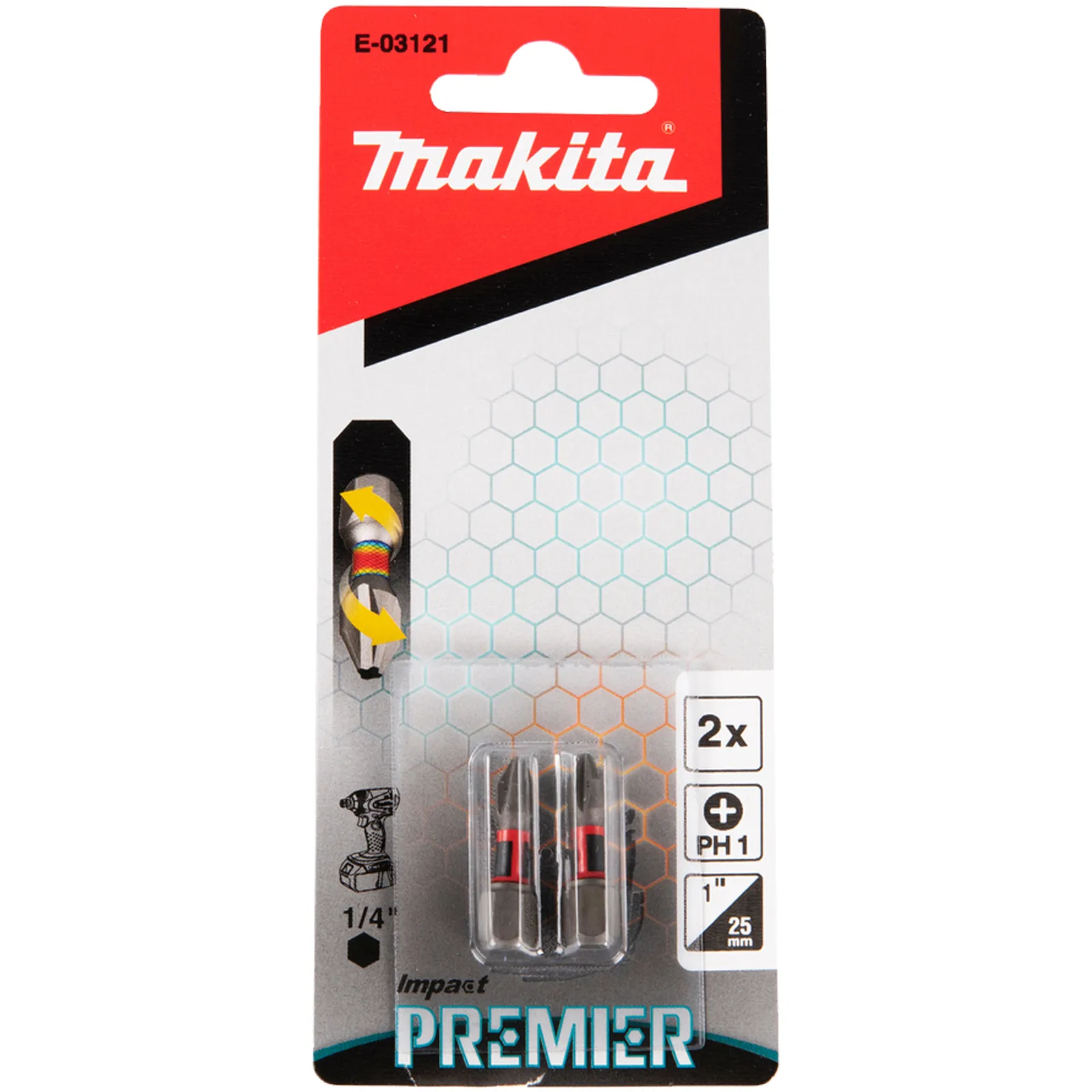 Kit Set 2 Inserti a Croce 1/4″ Esagonale MAKITA Bits Lunghezza 25 mm Punte Torsion Gold per Avvitatore a Impulsi