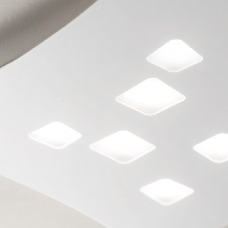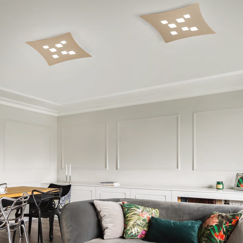 Questa plafoniera led moderna ha un taglio quadrangolare con i lati che seguono una leggera curvatura verso l’interno, esaltando gli angoli e conferendole un carattere più deciso. Al suo interno i punti luce quadrati disposti in modo asimmetrico sono un vero e proprio valore aggiunto sull’effetto estetico. Potremo scegliere se posizionare la lampada da sola o in combinazione con gli altri modelli dimensionali disponibili.