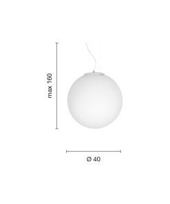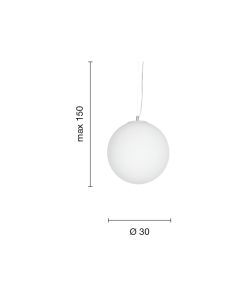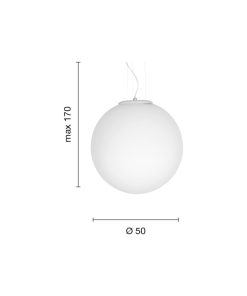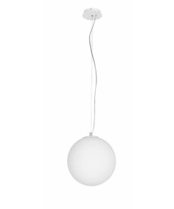 Sospensione in vetro soffiato acidato bianco, montatura in tinta.