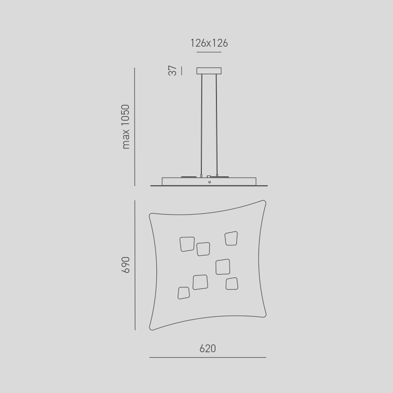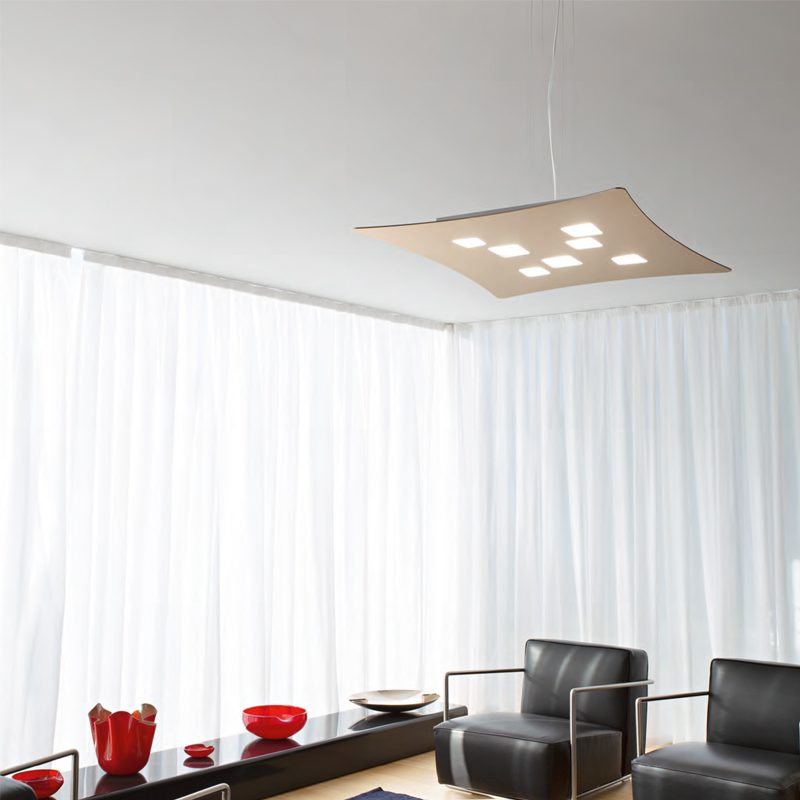Il lampadario led Isotta ha una forma quadrata con i lati che seguono una leggera curvatura verso l’interno, esaltando in questo modo gli angoli e conferendogli maggiore incisività e personalità senza intaccarne la sua inconfondibile eleganza.