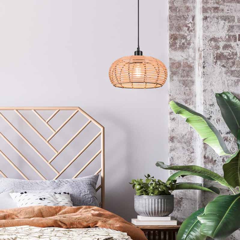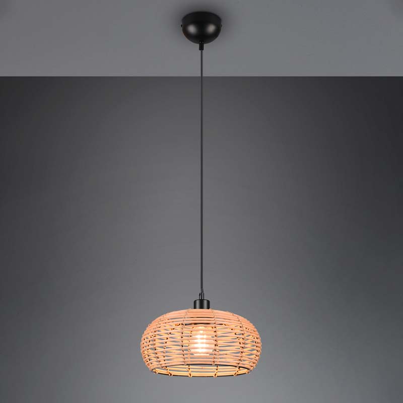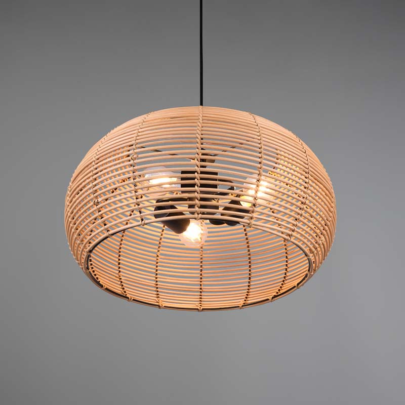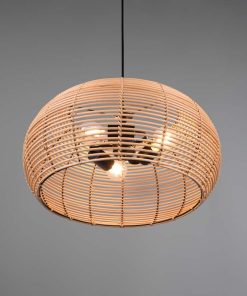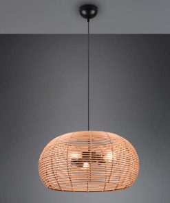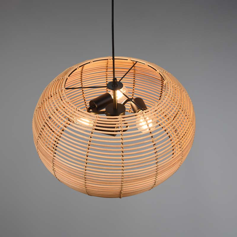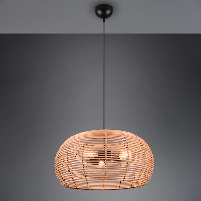 Lampada a sospensione Inga, con paralume rotondo in rattan, realizzata dal marchio Trio Lighting. Questa lampada a sospensione si fa apprezzare per la struttura che fonde alla perfezione i concetti di modernità e naturalezza.