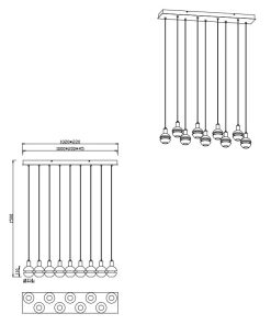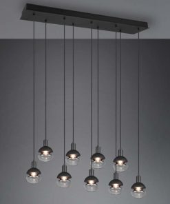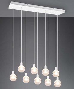 Lampada a sospensione Led Mela, base rettangolare, con 9 diffusori in vetro, regolabile in altezza