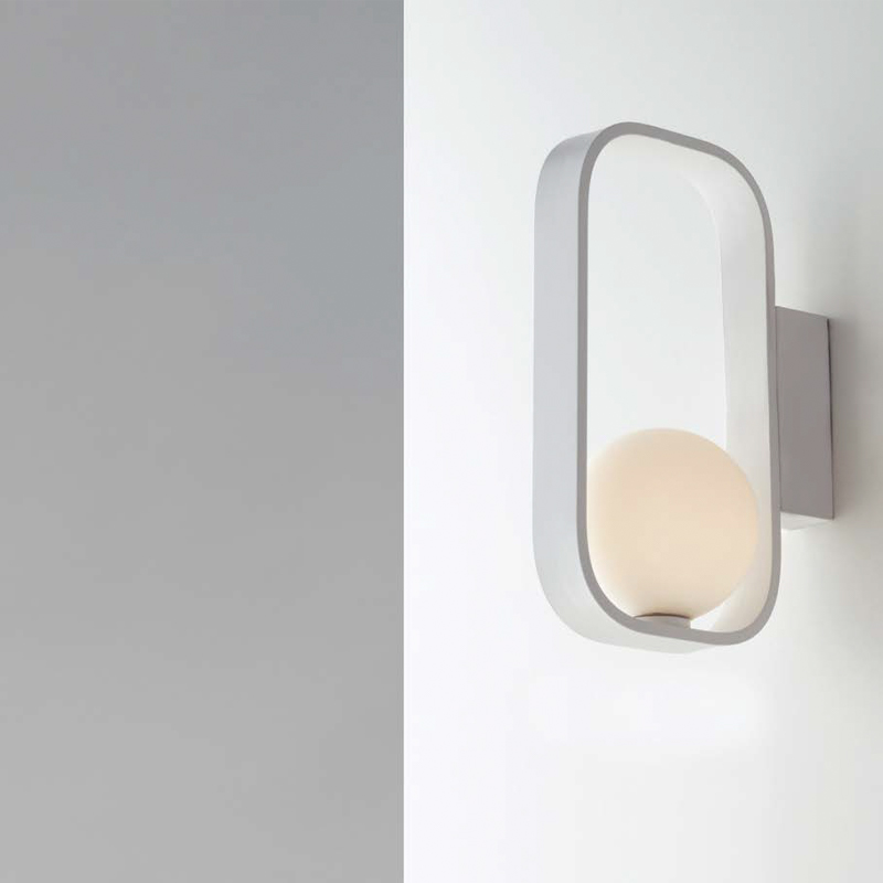 Lampada con struttura in alluminio bianco goffrato con diffusori in vetro bianco satinati