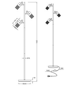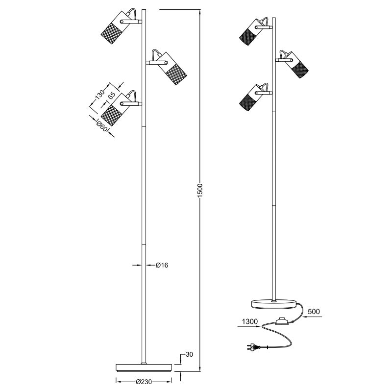 Lampada da terra Led Tosh con 3 spot in gabbia di metallo E14 H. 150 cm D. 23cm- Trio Lighting