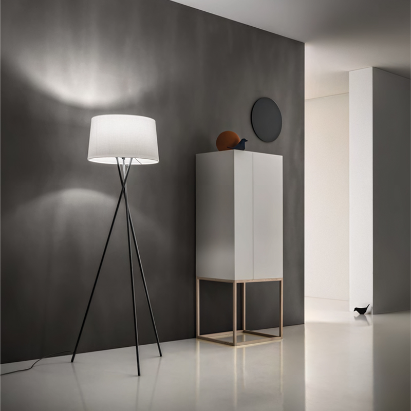 Si inserisce perfettamente in ogni contesto classico e contemporaneo. Questa lampada da terra moderna è composta da un treppiedi che sorregge un paralume in fine telo circolare, con la luce che viene diffusa dolcemente a 360 gradi. Una compagna suggestiva e raffinata che allieterà i nostri momenti di relax e che arrederà gli ambienti con impeccabile eleganza.