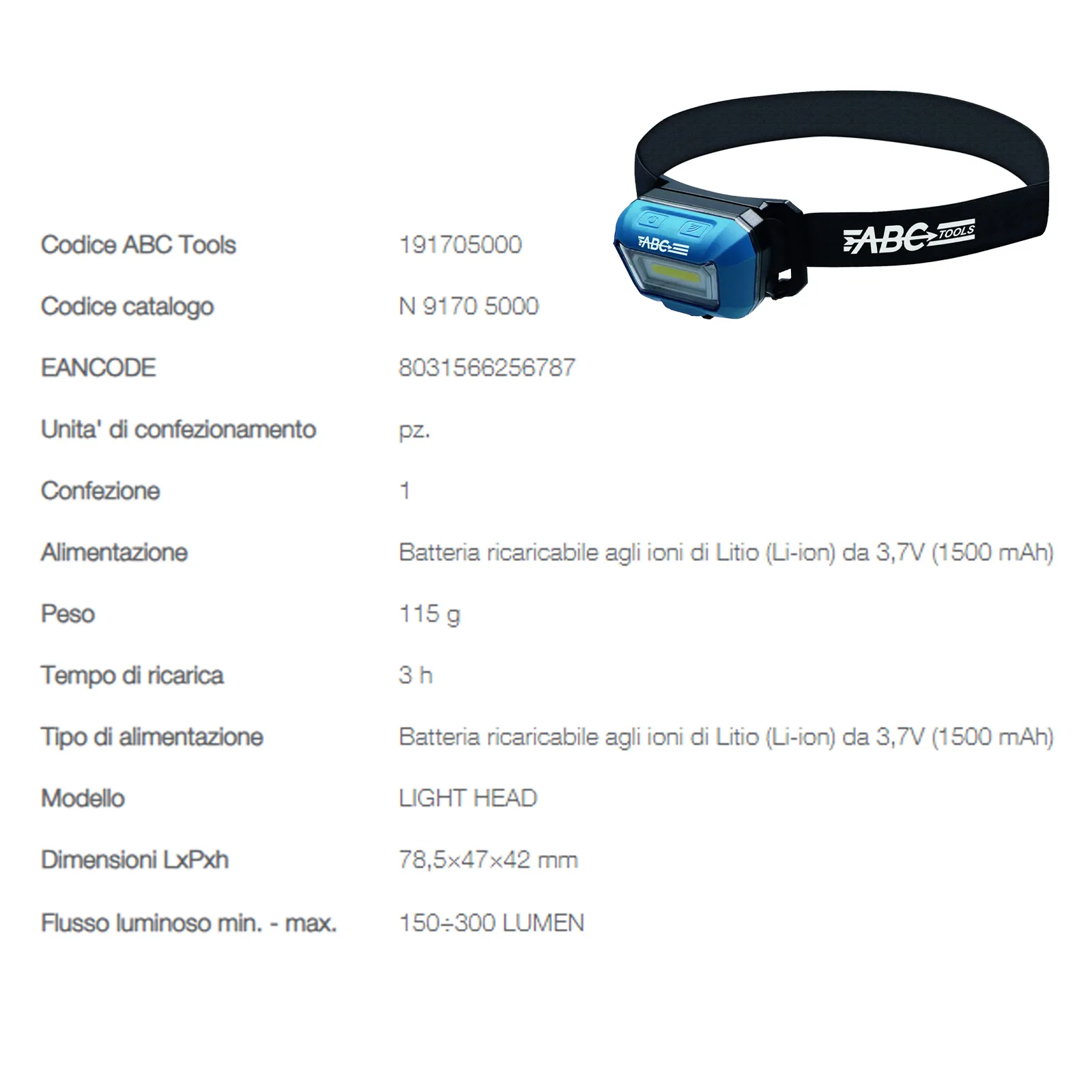 La lampada frontale della ABC TOOLS è ideale per un’ottima illuminazione di posti di lavoro e per effettuare ispezioni.