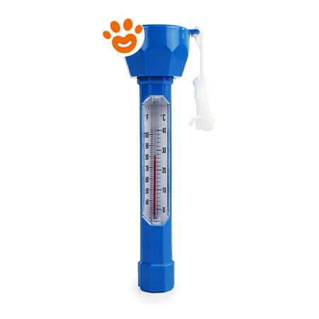 Termometro galleggiante LAPI con scala °C/°F, in plastica resistente, ideale per misurare la temperatura dell’acqua in piscina o spa.