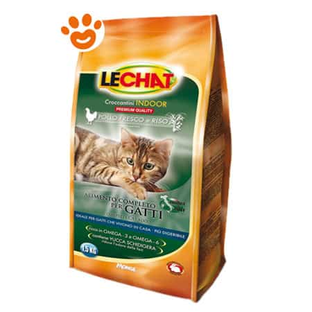 Lechat Cat Indoor con Pollo e Riso è un alimento completo, studiato per gatti adulti che vivono in casa e che necessitano di un’alimentazione controllata, ottimo anche per soggetti castrati e sterilizzati.
