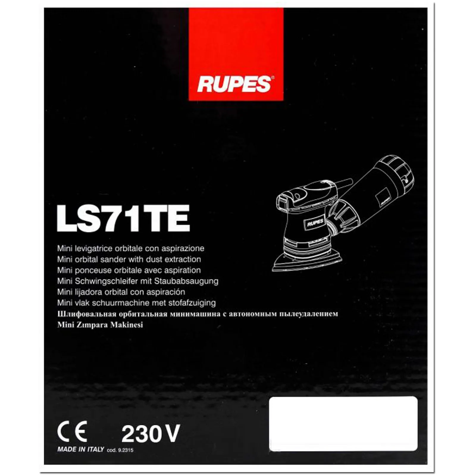 Levigatrice Orbitale Palmare Orbita Ø 2mm RUPES Platorello Rettangolare Velcro Potenza 200W Aspirazione Integrata LE71TE