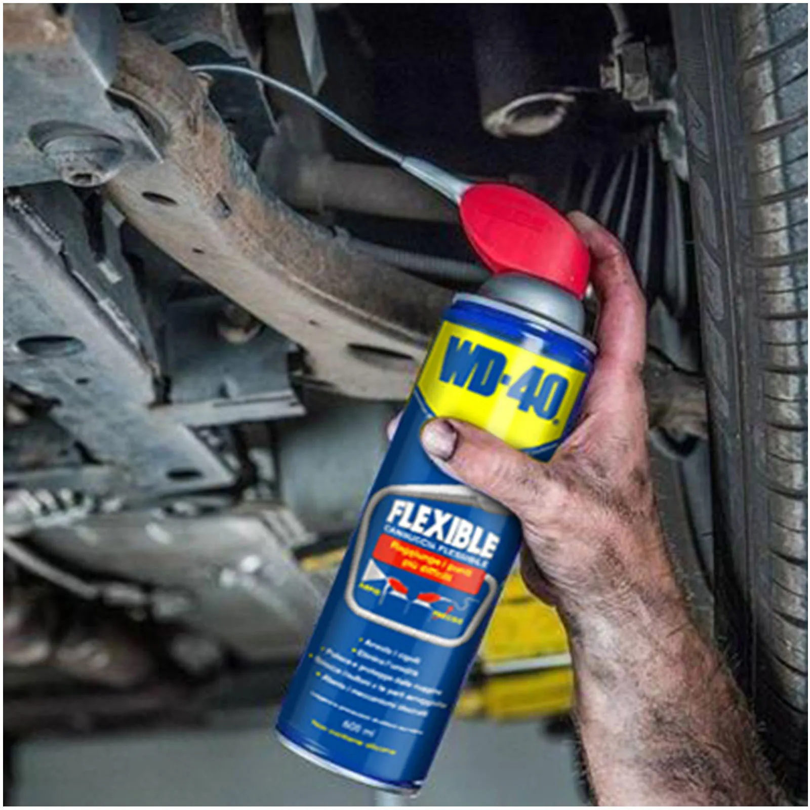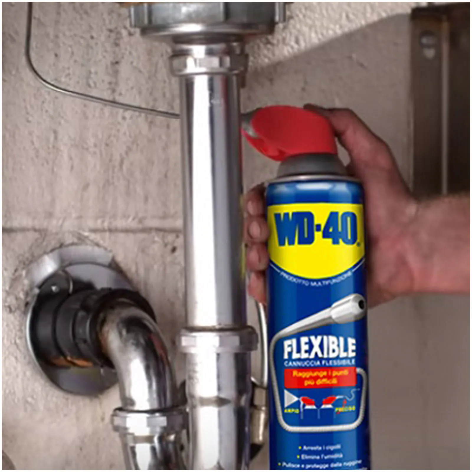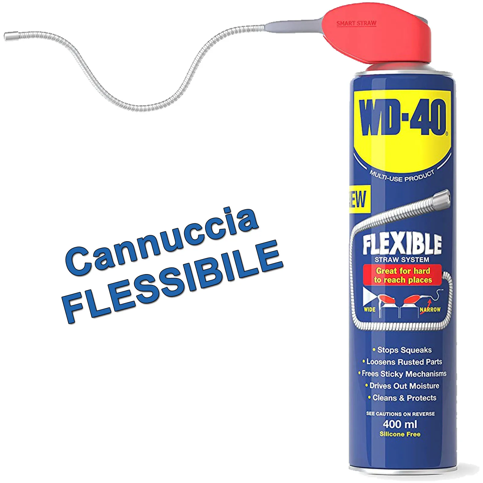 Il super-sbloccante WD-40 è un prodotto multifunzione che lubrifica, elimina cigolii, sblocca, toglie l’umidità, previene la ruggine e protegge tutte le superfici metalliche.
