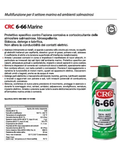 Il Lubrificante Protettivo Detergente 6-66 MARINE di CRC è un prodotto marino multiuso progettato per offrire una protezione duratura contro la corrosione e la ruggine, particolarmente in ambienti salmastrosi.