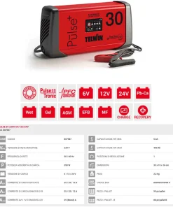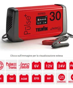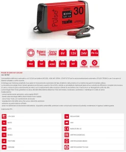 TELWIN PULSE 30 – Caricabatterie elettronico automatico a 6/12/24V per batterie WET,GEL, AGM, MF, SPIRAL, START-STOP per la carica/mantenimento automatico (PULSE TRONIC) e per il recupero di batterie solfatate o molto scariche.