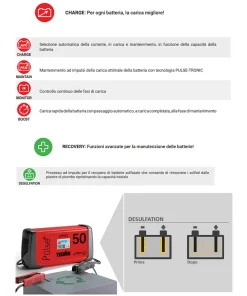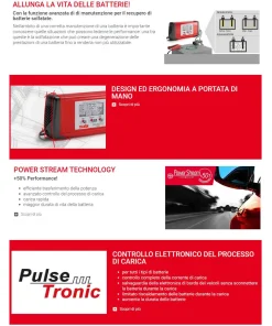 La tecnologia Pulse Tronic garantisce la carica ottimale della batteria attraverso 8 fasi che testano, monitorano, aumentano e mantengono lo stato di carica.