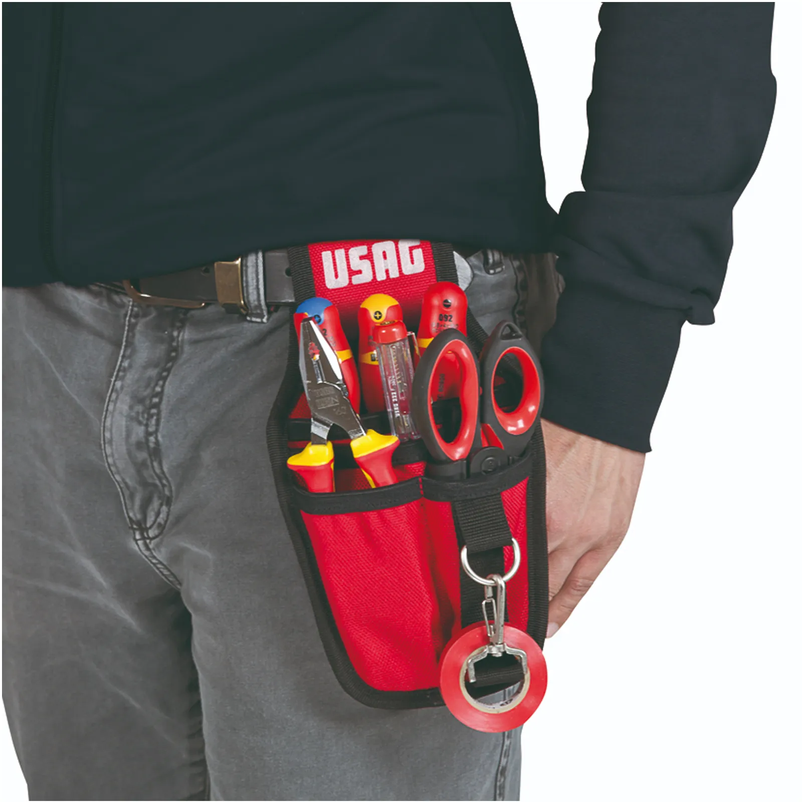 Il marsupio porta utensili USAG è realizzato in tessuto ad altissima resistenza, dotato di sistema di fissaggio alla cintura con chiusura in velcro risulta pratico e comodo da applicare.