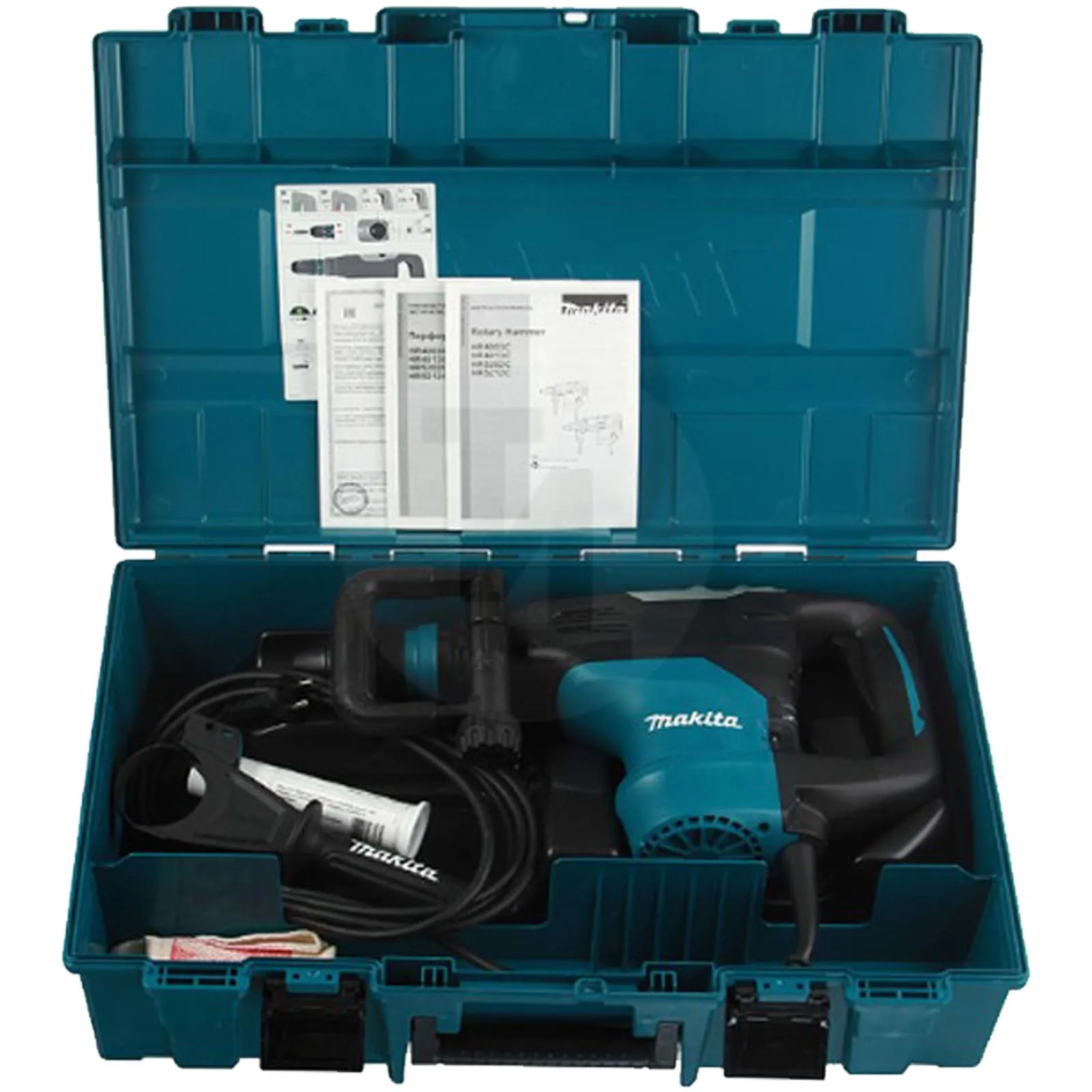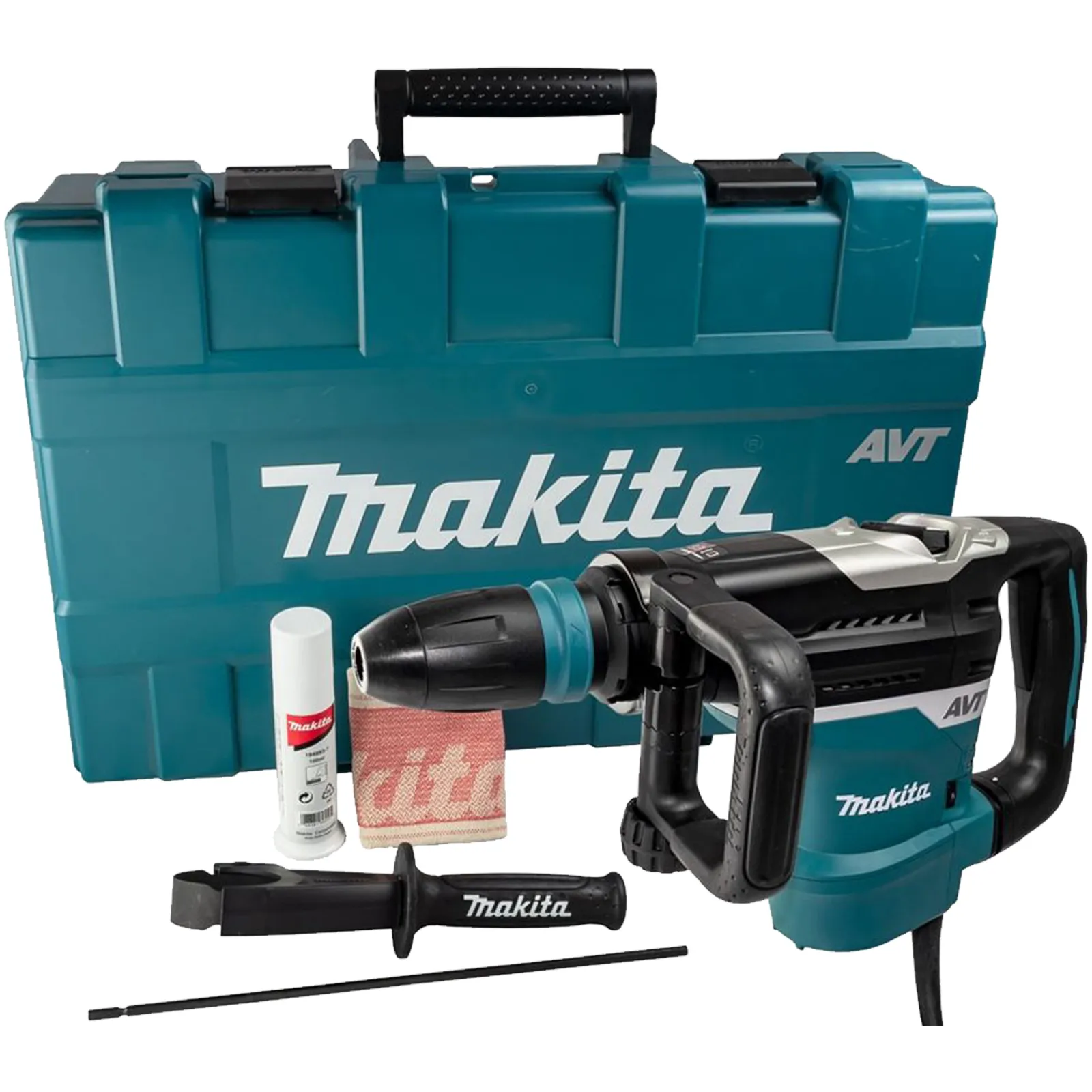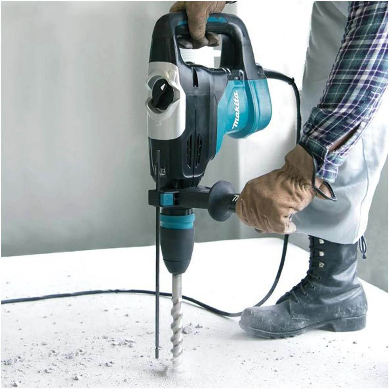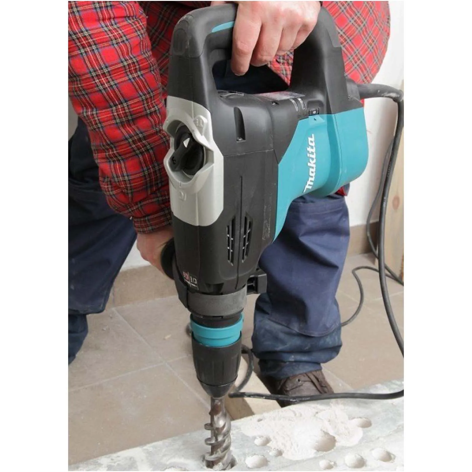 Martello Demolitore Rotativo Makita dotato di mandrino compatibile con tutti gli scalpelli e punte SDS-Max, ideale per lavori di demolizione di media intensità.