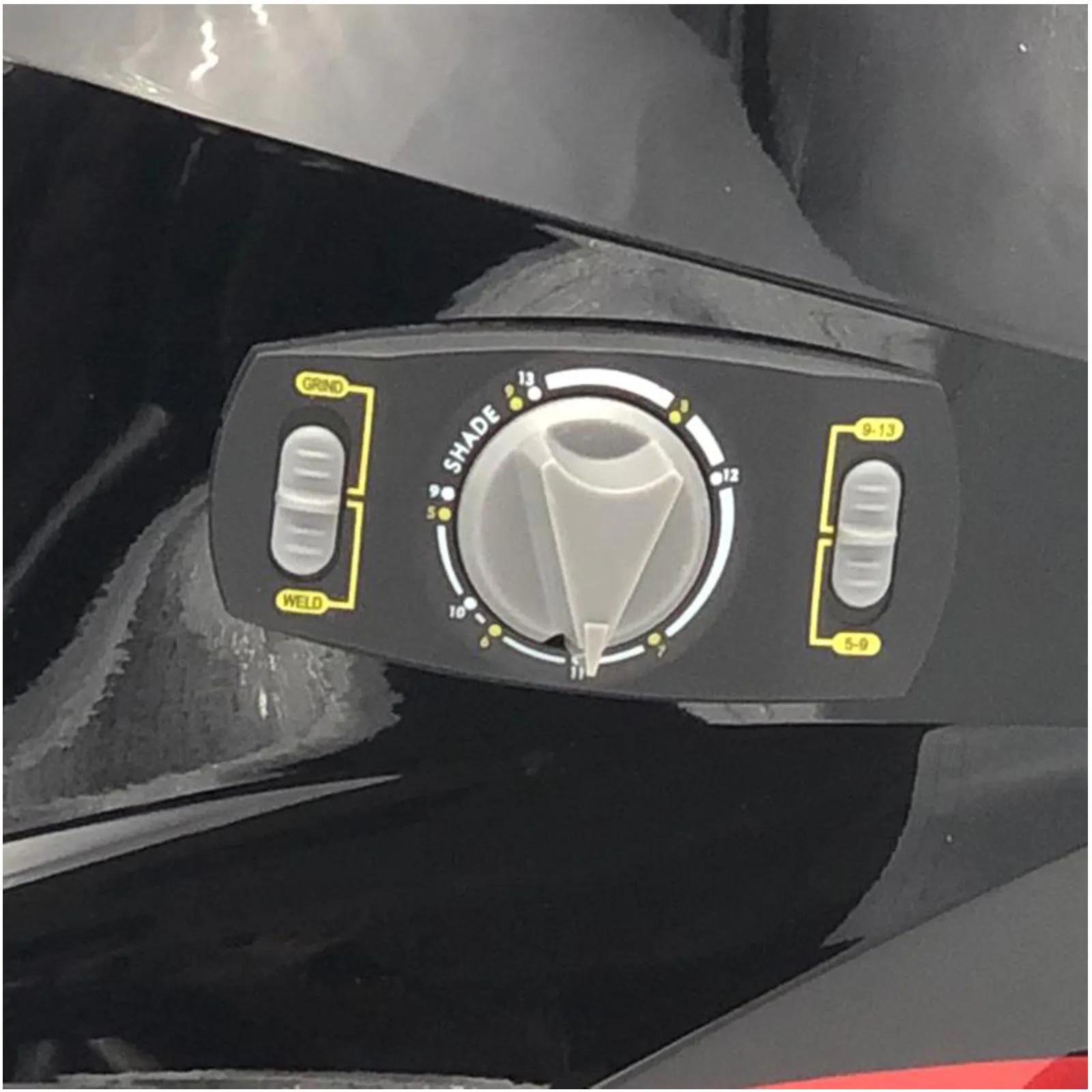 Grazie al comodo comando esterno è possibile regolare il DIN < 4÷9 9÷13 >, la sensibilità e il ritardo del filtro e azionare la funzione grinding per una migliore protezione per le operazioni di finitura della saldatura.