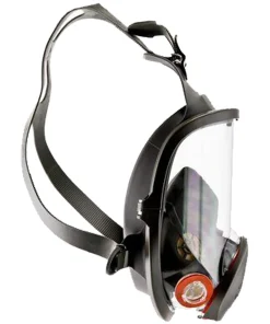 La maschera a pieno facciale riutilizzabile 3M™ 6000 è dotata di un’ampia lente in policarbonato e di facciale in materiale elastomerico, morbido e ipoallergenico.