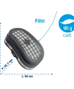 Ogni maschera è provvista di due filtri per la protezione contro gas, vapori e polveri.