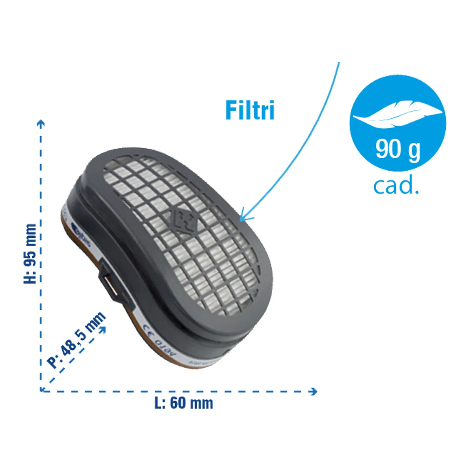 – Filtri gas: carboni attivi sigillati in un contenitore in ABS.